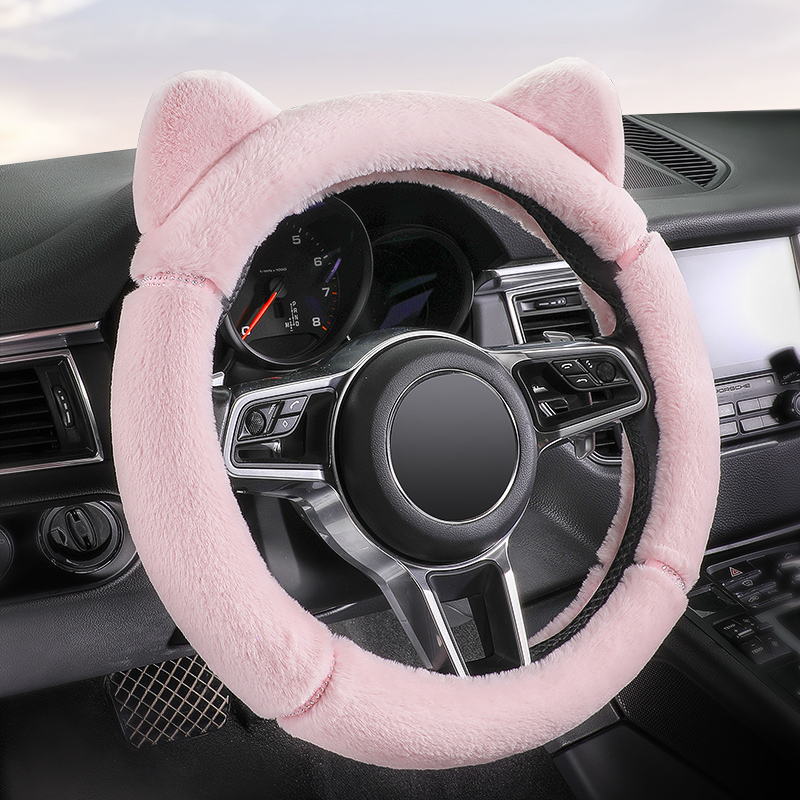 [QC]拽猫 长毛绒方向盘套 圆形 萌喵猫爪粉色 M21-JP-060