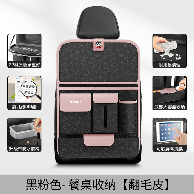 [QC]拽猫 餐台款 椅背收纳袋 多功能置物袋 黑粉款 ZM-FMPZWD-04(B款)翻毛皮+胶桶