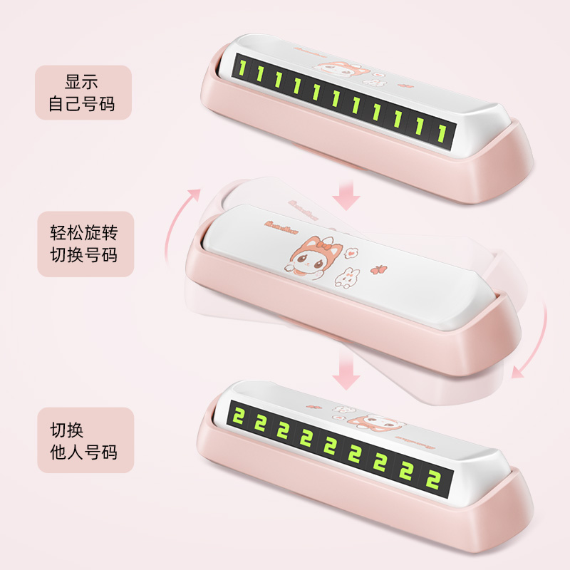[QC]拽猫 磁吸 隐藏式停车牌(双号码) 萌喵招手款号码牌 M24-TCP-003