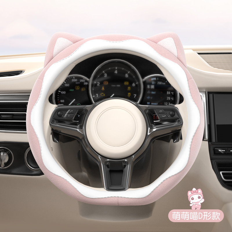 [QC]拽猫nv 方向盘套 皮革+短绒拼接(D型 猫耳款 38cm)萌喵甜甜圈 M22-JP-053