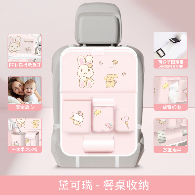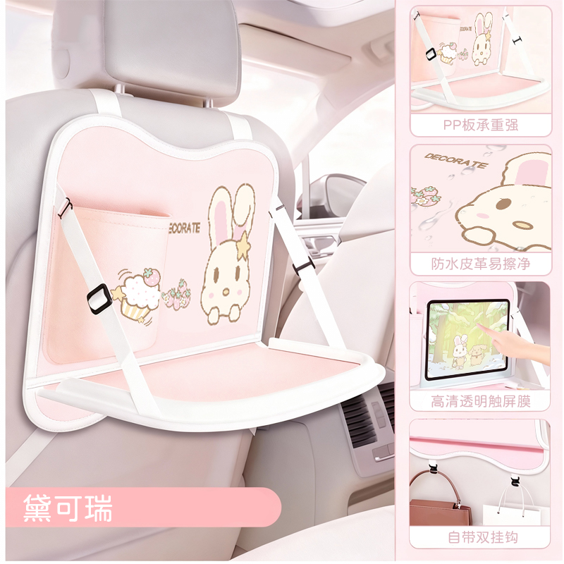 mcz 黛可瑞DECORATE 汽车椅背收纳袋 车载餐台 多功能餐盘 糖果粉 DE009