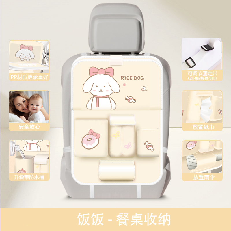 mcz 饭饭RICEDOG 汽车椅背收纳袋 车载餐台 多功能餐盘 奶油杏 RD009
