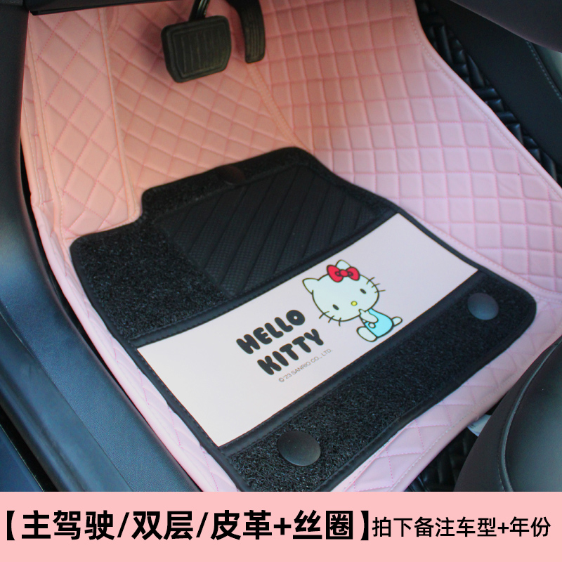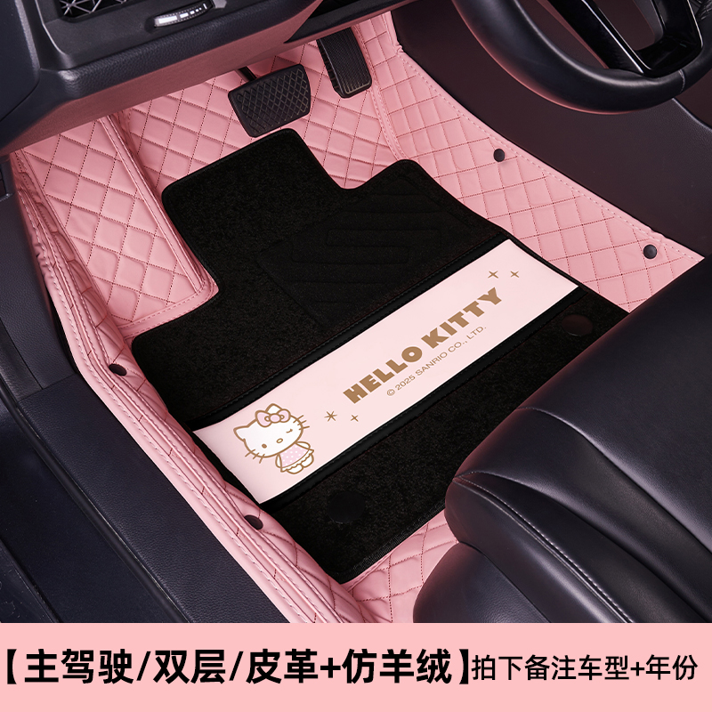 dggt kitty 专车专用 大包围 双层脚垫 丝圈+皮质 主驾驶单座 西柚粉 (新)KT043-1