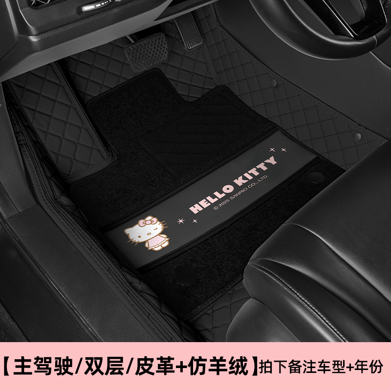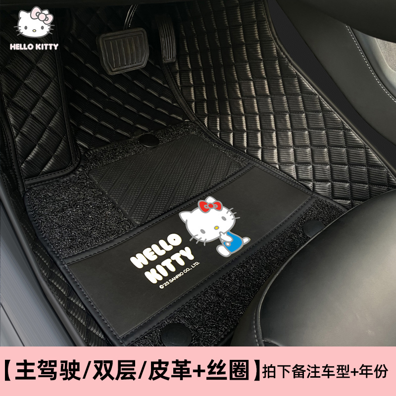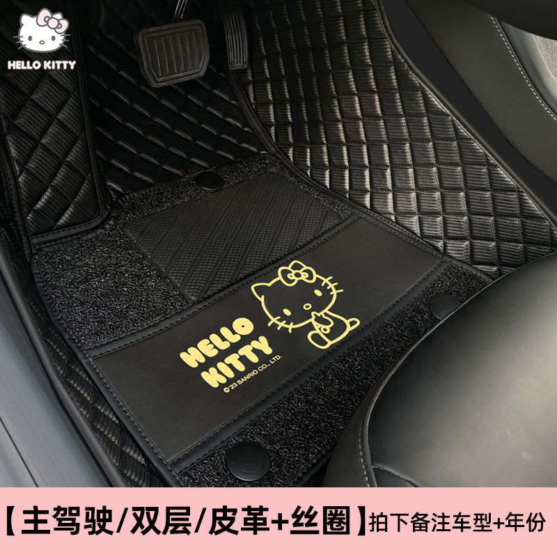 dggt kitty 专车专用 大包围 双层脚垫 丝圈+皮质 主驾驶单座 黑金款 (新)KT043-3