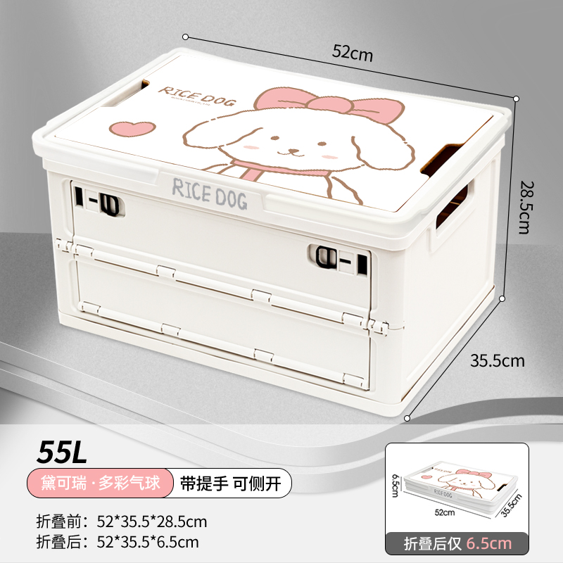 ZD 饭饭RICEDOG 车载整理箱 可折叠露营收纳箱 提手+侧开款 粉萌时光 大号 55升 白色 RD0013D